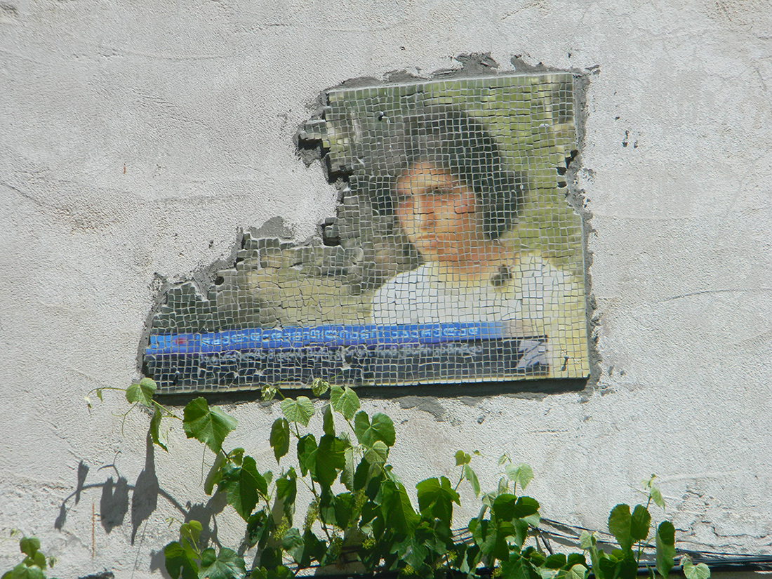 This material is part of the larger group of materials named E=MC2, it has been broadcasted around 2004. it tells the story of a young lady named Mzevinar, who after one month of her marriage was kicked out of her husbands house with reason that she wasn't a virgin moment they got married. Instead of doing what she was supposed to do, that is to involve family elders as it usually happens where mainly man decide how to solve the problem and where primary subject of consideration would be family honor and things like that and only after women and her problem, she went to a court and tried to defend herself with a legal means. That is a clear break from whole generations of tradition,... it is remarkable that this kind of things happened in such a remote areas of mountain Adjaria. Where the family and tribal ties are so much titer and still ever so strong. This is why this mosaic is called dotted line, because the straight line connecting a person (women) to its immediate family has been broken and with a quest for new contract in society, where there are institutions in place instead of tribe - family clan relationships.